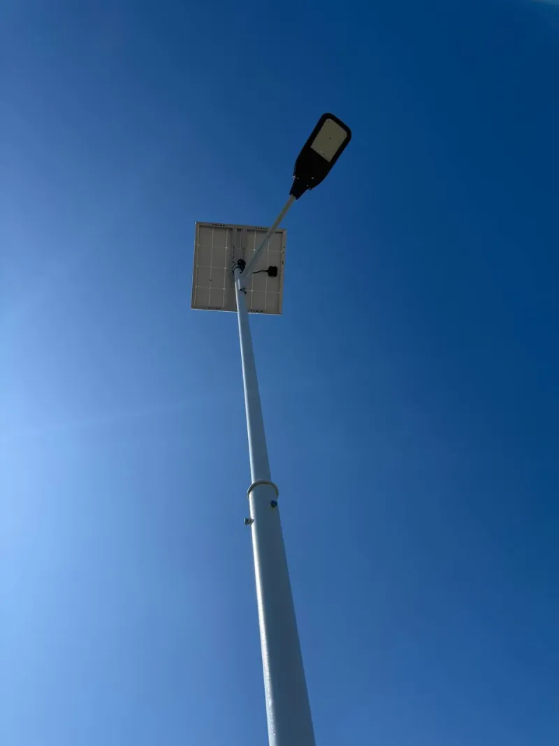 An autonomous street lighting system with solar-powered lamps and supports has been installed.